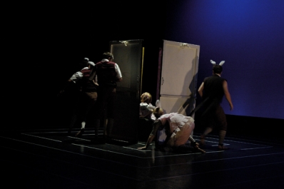 Rabbit was inspired by the legendary curiosity of Alice in Wonderland and the celebrated absurdity of her journey down the rabbit hole. Harnessing fragments of of Alice’s story as catalysts for imagination, creativity and nostalgia, Rabbit blended object and costume design with dance theatre to convey the journey of an ‘Alice-wannabe’, She turns up in a forest to audition for a share-burrow of rabbits for their DIY wonderland. Dynamically, these squabbling rabbits resembled Ben Elton’s The Young Ones. Rabbit was nominated for four Helpmann Awards in 2006 including Best Female Dancer, Best Children’s Production. This full-length work with an outstanding original score by sound designer Mike O’Brien and cellist-composer Melanie Robinson, this work toured nationally including selling out for a 2-week season at the Playhouse at the Sydney Opera House in 2007.